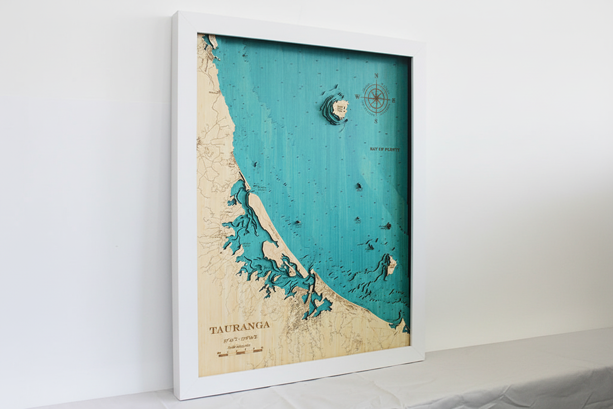 All of our maps are made from layers of sustainable bamboo ply and framed in FSC pine frames. Our art maps are entirely handmade by us in our Wairarapa workshop. We have worked hard to make a beautiful and sustainable artwork for you. Due to the handmade nature and natural materials used no two maps are the same and will vary slightly to the image shown. Read more about how your map is made here.